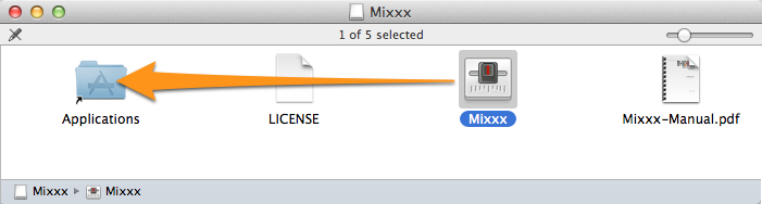 Finderbrowse to the location where the Mixxx download was saved, usually theDesktoporDownloadsfolder.Double-click the the Mixxx installer .DMG file, a new Finder window appears.
