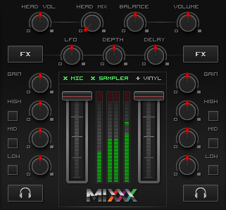 The FX (“Effects”) button enables a built-in flanger effect on the selected channel.