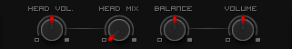 The Volume Knob controls the overall volume of of the master output. Adjust this knob so that the Master VU meters are just at the peak.