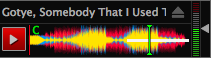 Waveform overview: Shows the various markers (Cues, Hotcues) within the track as well as the waveform envelope of the entire track. Clicking somewhere on the waveform allows you to jump to an arbitrary position in the track.