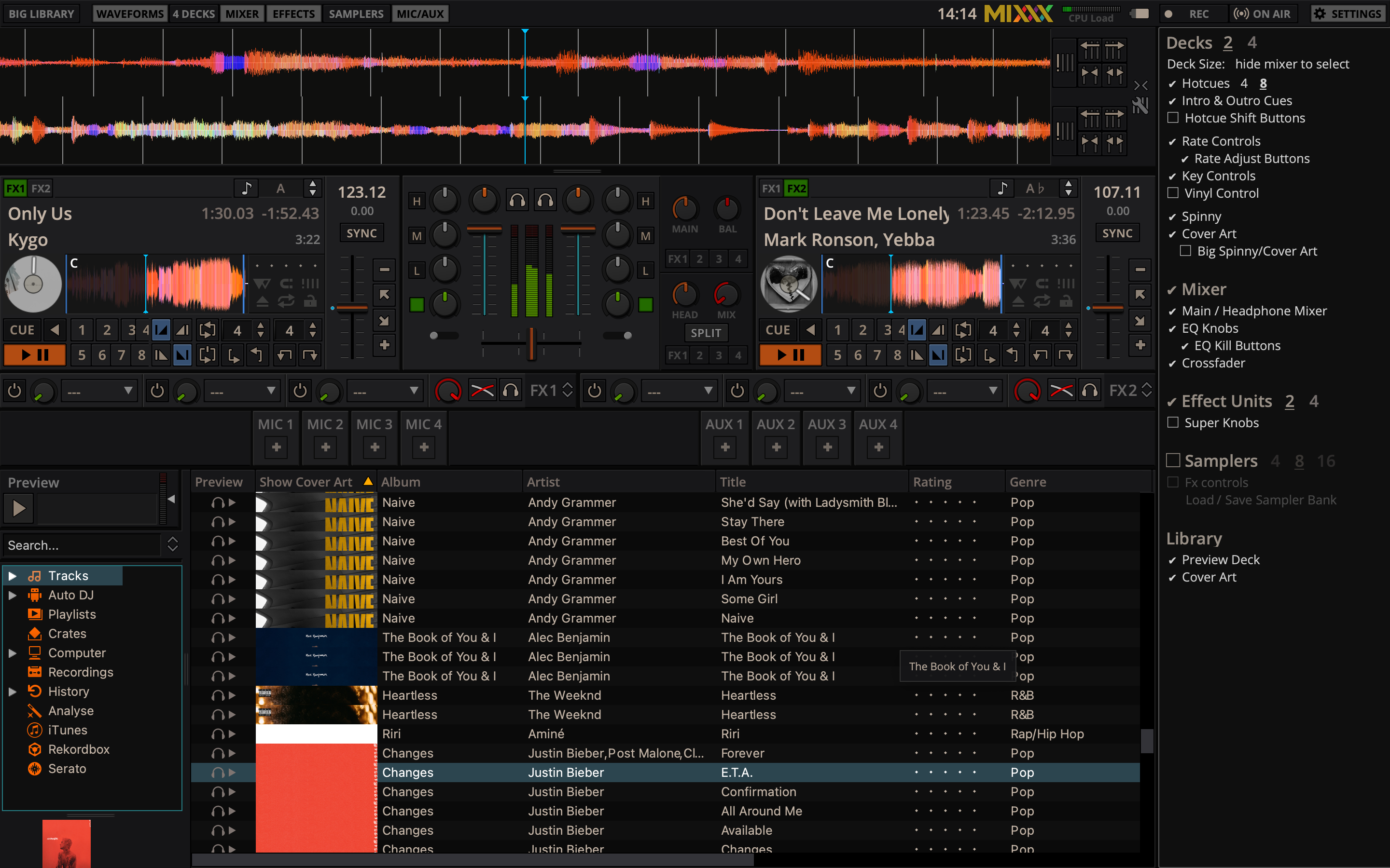 Depending on the skin, Mixxx displays either parallel waveforms (default) or