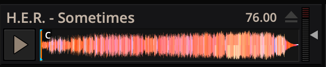The cover art of the track loaded into the deck is displayed on the left side of the track. This is the same as the cover art that is shown under the Cover Art column heading in the Mixxx library.