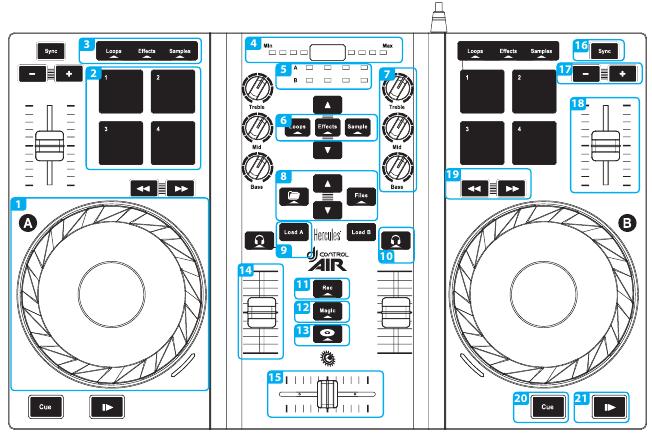 Hercules DJControl AIR (schematic view). This picture is taken from the Getting Started Tutorial (courtesy of Guillemot Corporation S.A.).¶
