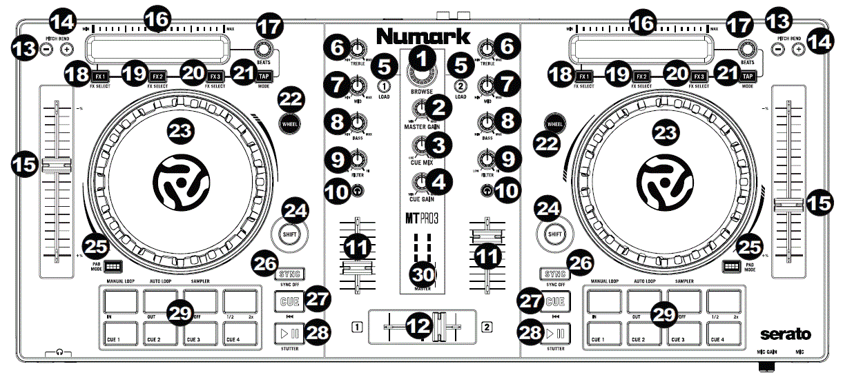 Numark Mixtrack (Pro) 3 (schematic view)¶