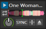The line on the vinyl widget rotates if the track moves. It is similar to the position marker found on scratch records. Use the mouse on the vinyl widget to pause, scratch, spin-back or throw tracks - just like a real record. When performing Loop rolls or right-clicking on the vinyl during playback, a “ghost” marker hints where the playback will continue. The Vinyl Widget is hidden by default and can be enabled in the Deck Options Button Grid.